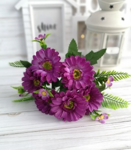 Искусственные герберы с добавками, цвет сиреневый, букет 6 голов , диаметр 7 см, длина букета 30 см